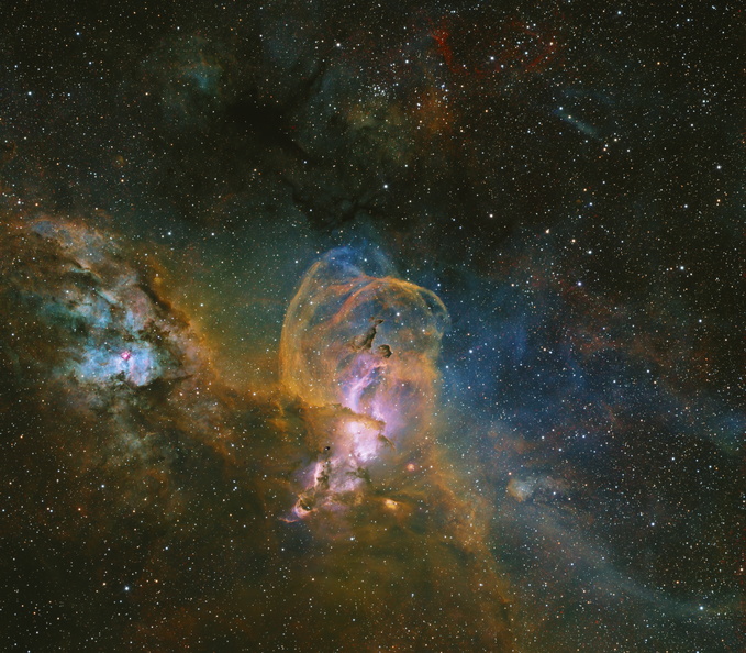 Der Pacman Nebel ist ein Emissionsnebel im Sternbild Kassiopeia. Er ist circa 9500 Lichtjahre von der Erde entfernt und hat seinen Namen aufgrund der Form nach der berühmten Videospielfigur aus den 80er Jahren erhalten. In seinem inneren befindet sich der offene Sternhaufen IC 1590 sowie einige Bok Globulen (kleine Dunkelnebel).